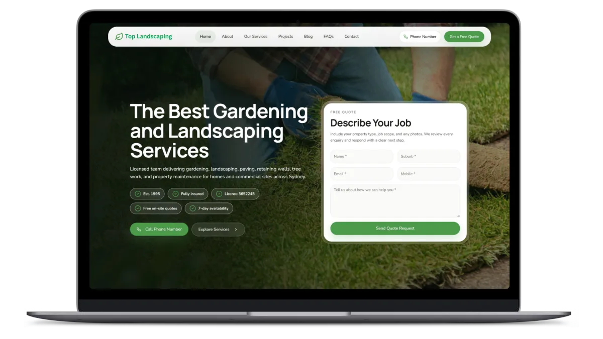Local service businesses (landscaping, plumbing, etc.) that want more enquiries without dealing with tech or marketing.
